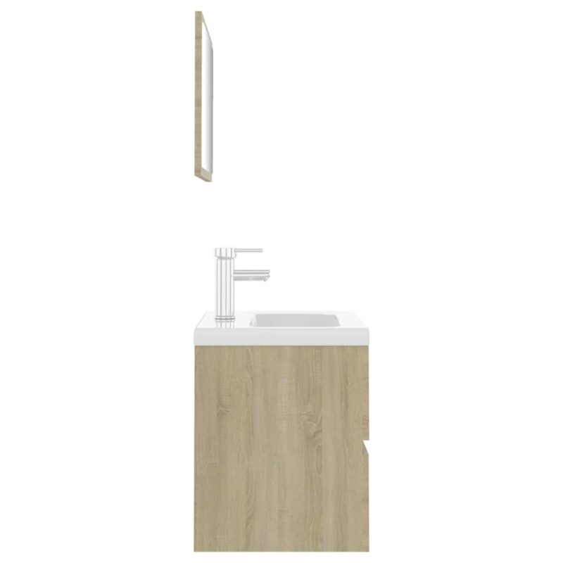 Optez pour cet ensemble de meubles de salle de bain Chêne sonoma Aggloméré qui marie fonctionnalité et esthétique pour créer un espace harmonieux et ordonné.