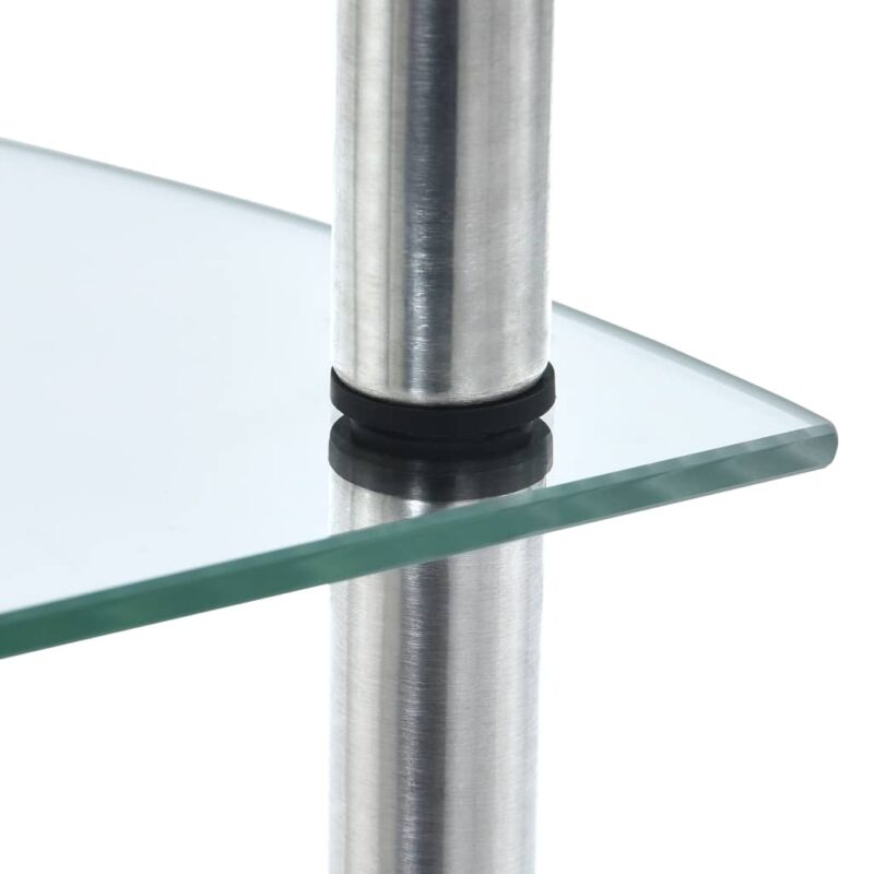 Cette élégante étagère en verre trempé est l’accessoire idéal pour valoriser tout espace intérieur grâce à son design transparent moderne. Composée de trois niveaux, elle offre une capacité de stockage importante et se révèle idéale pour présenter vos objets de décoration, comme les cadres photo ou les plantes, tout en gardant vos affaires bien ordonnées. Que ce soit dans votre salon pour y déposer vos livres ou dans votre salle d’eau pour vos accessoires de toilette, sa construction en verre trempé épais appuyée par un cadre robuste en acier inoxydable garantit une stabilité sans faille. De surcroît, entretenez-la sans effort grâce à sa surface lisse nettoyable d’un simple coup de chiffon humide. Le montage de l’étagère se fait aisément.