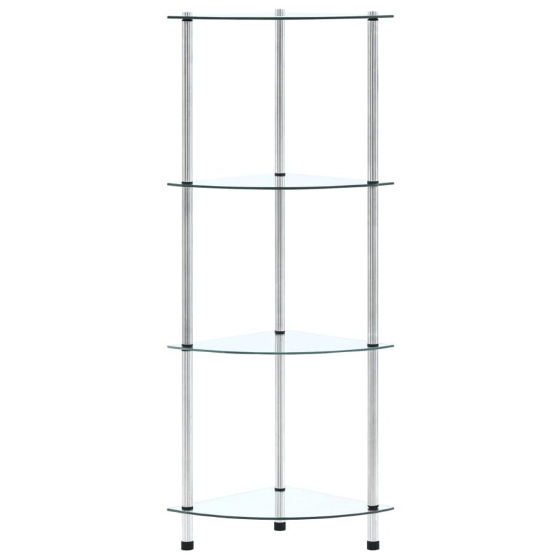 Élégance et fonctionnalité avec l’Étagère 4 niveaux Transparent 30x30x100 cm Verre trempé