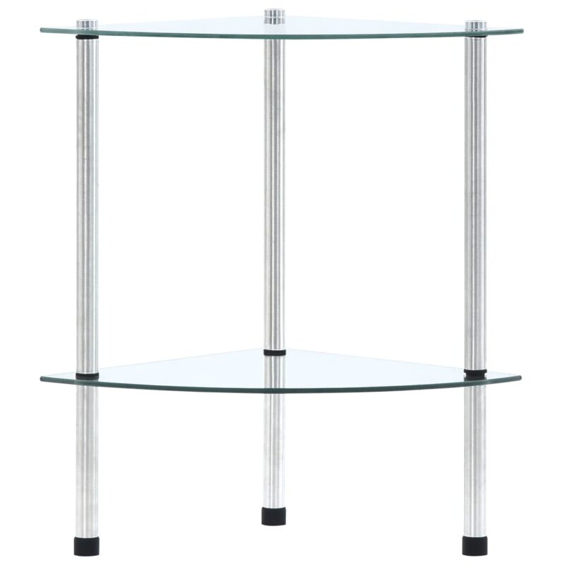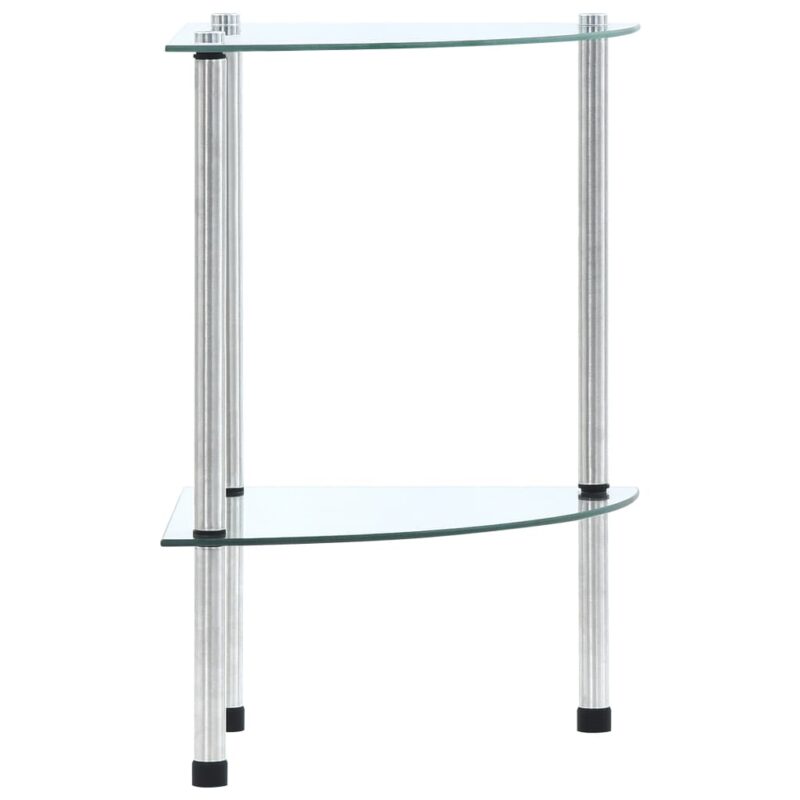 Mettez en valeur vos précieux bibelots ou organisez avec élégance vos nécessités quotidiennes grâce à notre étagère en verre au design contemporain. Placée dans le coin d’un salon ou faisant office de podium pour vos trophées au bureau, cette étagère deux niveaux se révèle aussi pratique dans une salle de bains pour ranger avec raffinement vos produits de beauté. Constituée de verre trempé de qualité et supportée par une structure en acier inoxydable, notre étagère garantit résilience et stabilité pour une tranquillité d’esprit totale. En prime, son entretien est un jeu d’enfant : un coup de chiffon humide suffit pour lui rendre son éclat. L’assemblage de cette pièce d’ameublement est un véritable jeu d’enfant.
