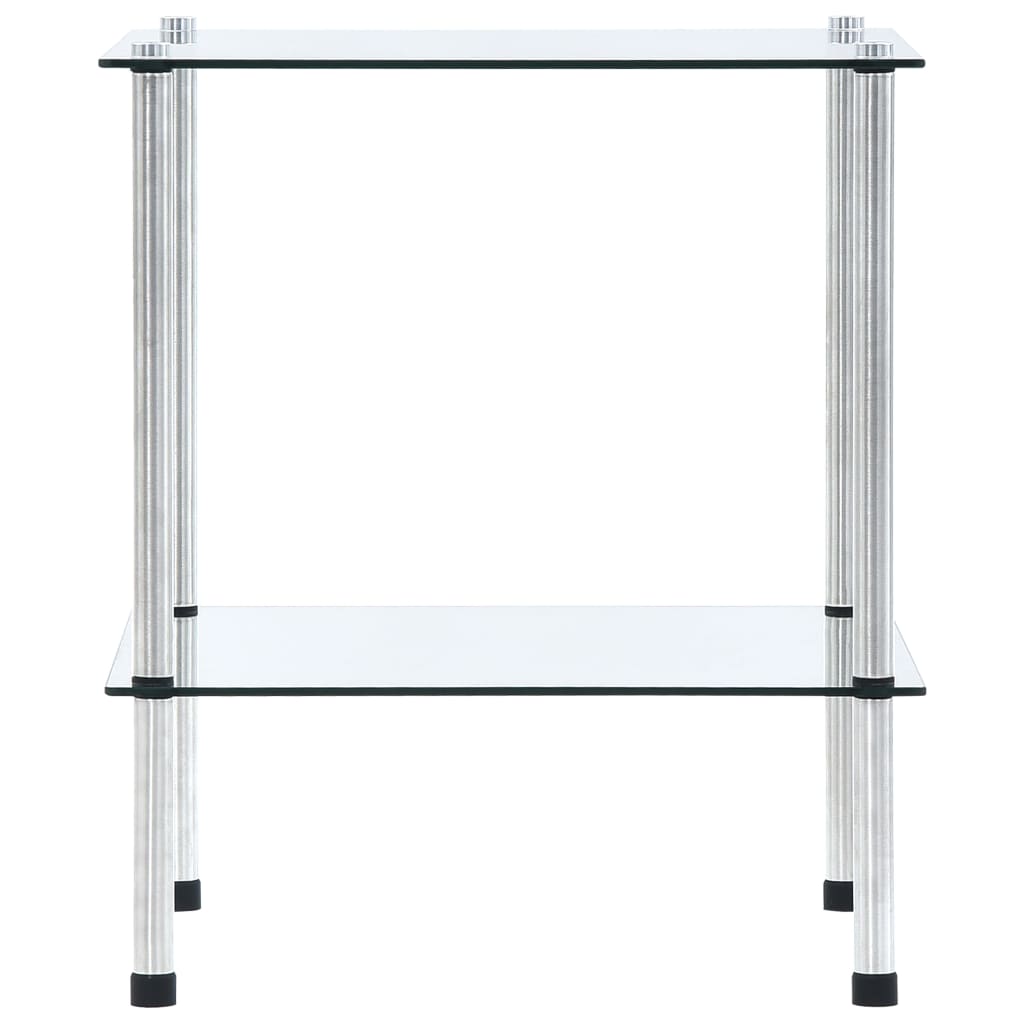 Que ce soit pour sublimer un recoin ou organiser vos espaces, l’Étagère à 2 niveaux Transparent 40x40x47 cm Verre trempé fusionne à merveille praticité et esthétique contemporaine. C’est la solution idéale pour mettre en valeur vos objets favoris tout en gardant un espace ordonné.