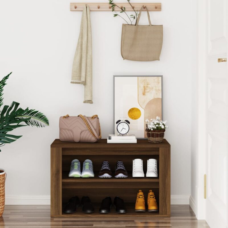 Maximisez l’organisation avec l’étagère à chaussures en chêne marron