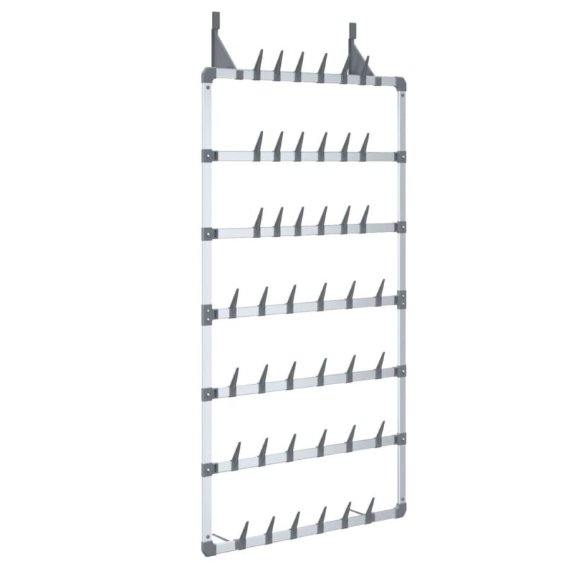 Ranger vos souliers devient un jeu d’enfant avec cette étagère à chaussures suspendue au ton argenté, qui s’adapte aussi bien derrière une porte que sur un mur. Avec ses sept niveaux, elle s’impose comme une solution idéale, gageant à la fois sur l’esthétique et l’optimisation de l’espace.
