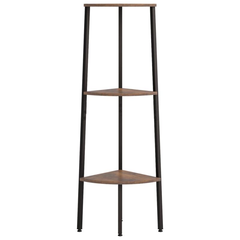 Maximisez votre espace avec l’étagère d’angle 3 niveaux marron foncé et noir