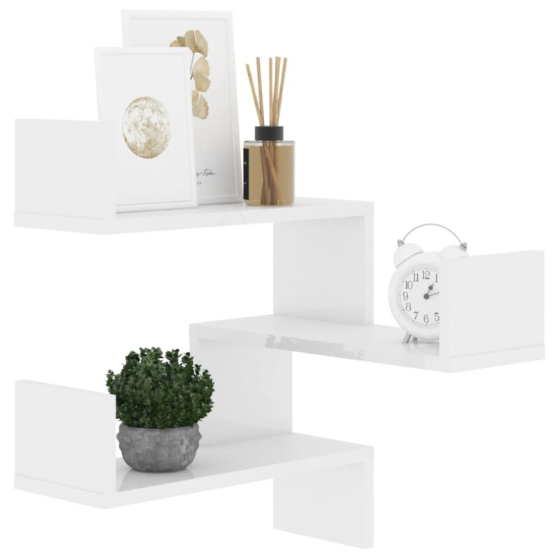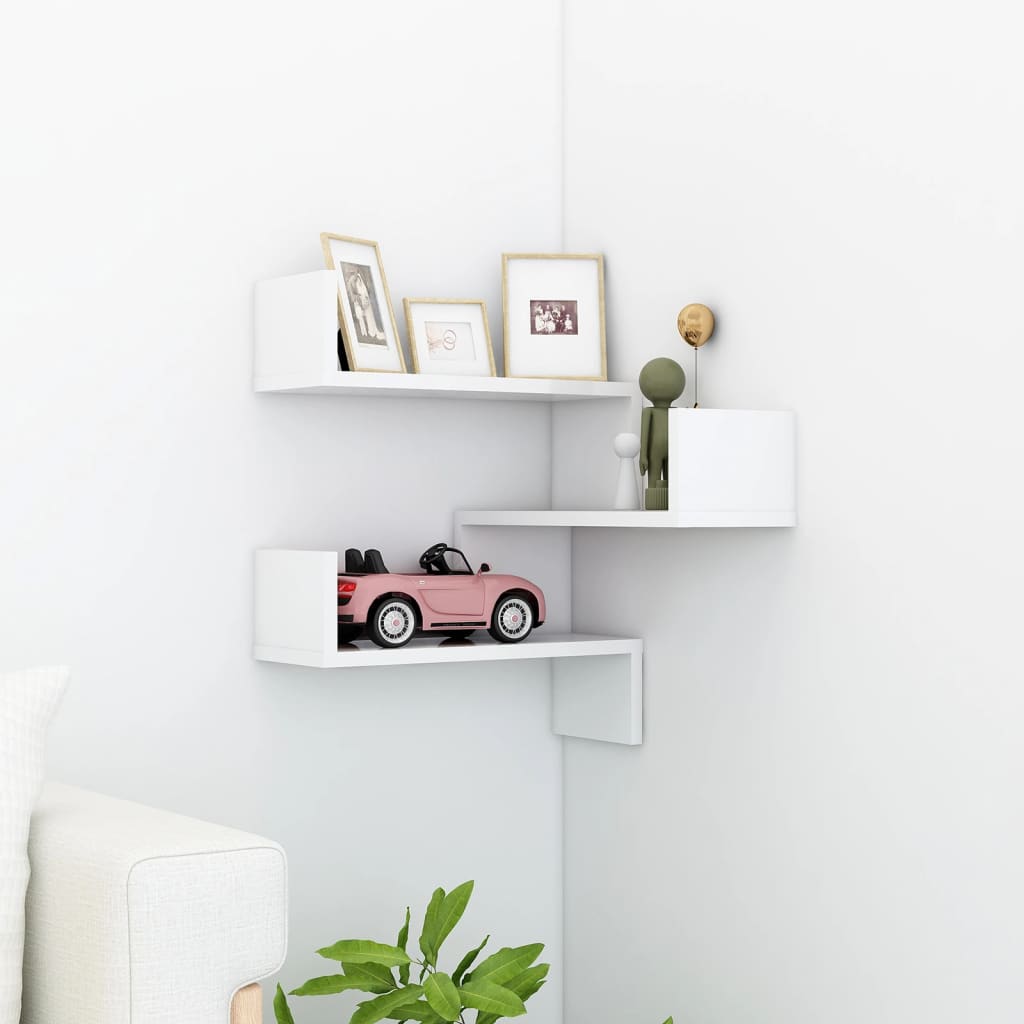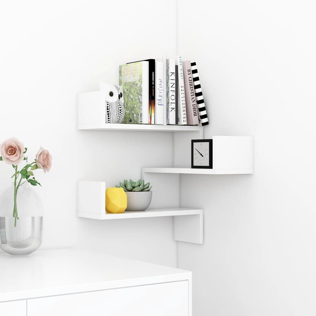 Ajoutez une dimension esthétique et fonctionnelle à votre espace de vie avec cette étagère murale d’angle blanc brillant en aggloméré, qui vous promet à la fois beauté et longévité.