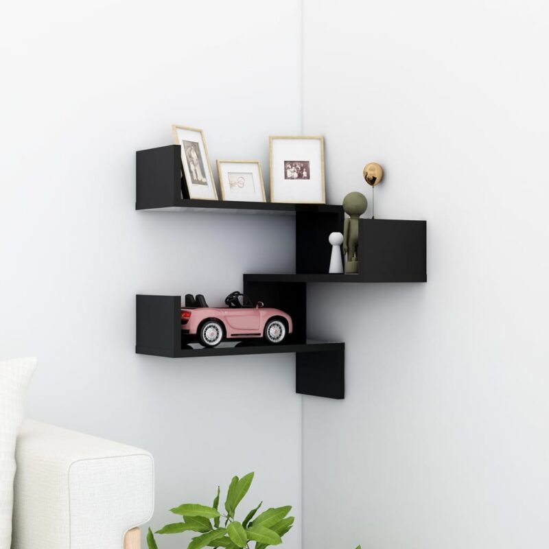 Mariage de style et de praticité, cette étagère murale d’angle Noir brillant 40x40x50cm Bois ingénierie est l’ajout parfait à toute pièce de votre maison, que ce soit la salle de séjour, la chambre ou la cuisine. Sa structure durabe assure une stabilité exemplaire. Son design moderne apporte une touche de finesse à votre décor, permettant de mettre en valeur des décorations, des trophées, des livres, des collections ou des objets d’art. Profitez de l’opportunité d’utiliser intelligemment les espaces souvent délaissés des coins de vos pièces avec cette étagère de coin chic.