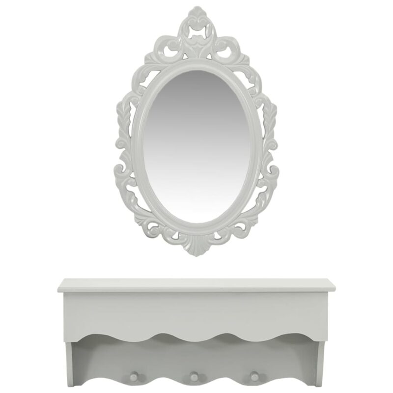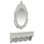 L’espace généreux sur le dessus permet de déposer sans effort vos portefeuilles, smartphones, lunettes ou bijoux, en évitant l’encombrement sur d’autres surfaces de votre foyer. Ce meuble astucieux, construit en MDF robuste, promet résistance et pérennité. L’ensemble comprenant étagère et miroir est conçu pour être monté solidement sur votre mur, offrant une solution pratique et durable pour l’organisation domestique.