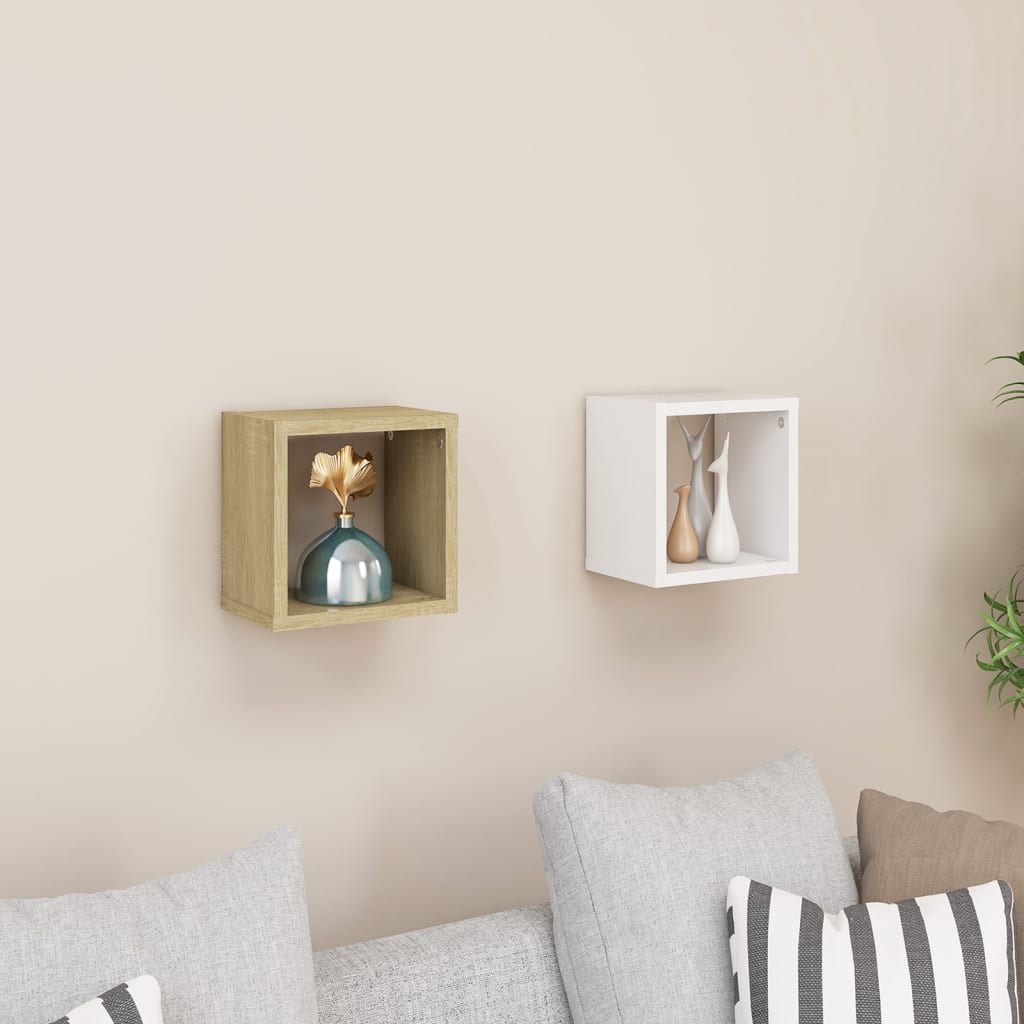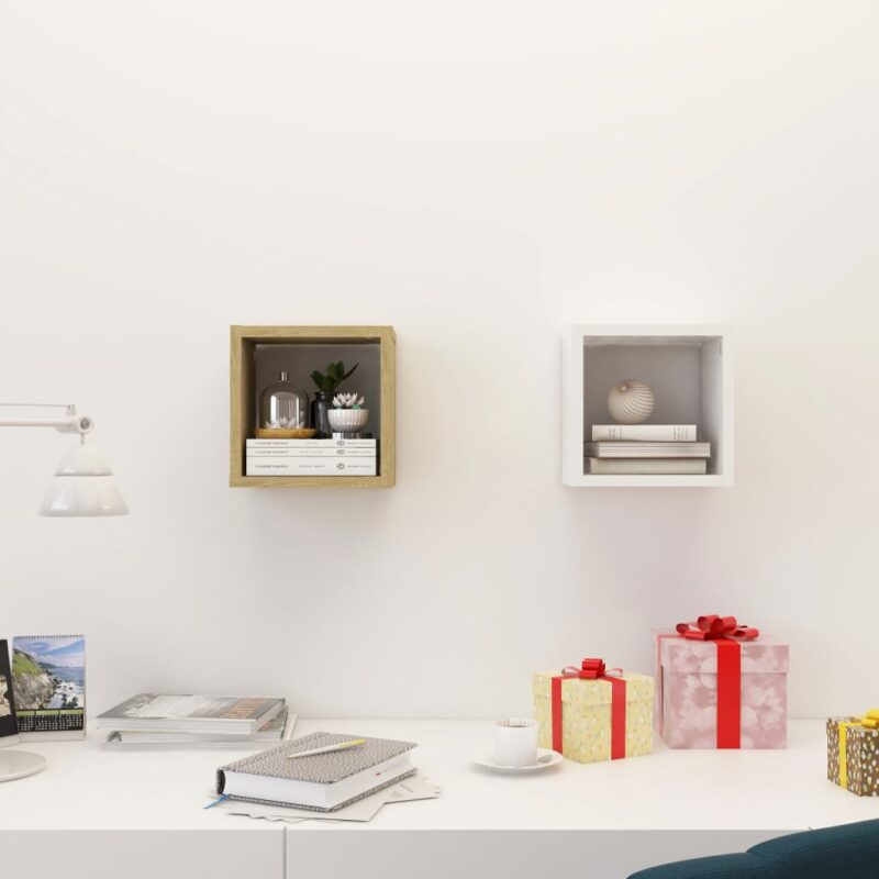 Transformez un mur nu en un espace de rangement attrayant et fonctionnel avec notre duo d’Étagères cube murales 2 pcs Blanc et chêne sonoma 22x15x22 cm. Conçues pour captiver l’attention dans votre espace de vie ou de repos, ces étagères flottantes combinent solidité et style pour un usage prolongé. Parfaites pour y poser des éléments décoratifs ou pour une organisation intelligente – intégrez-les dans votre salon pour vos objets décoratifs, utilisez-les comme rangement astucieux pour vos épices dans la cuisine ou exposez vos souvenirs en photo dans la chambre. Le nettoyage des étagères se fait aisément à l’aide d’un chiffon humide, les rendant non seulement un choix esthétique mais pratique aussi.