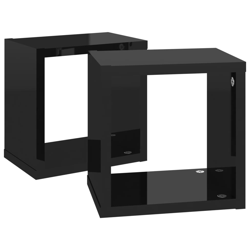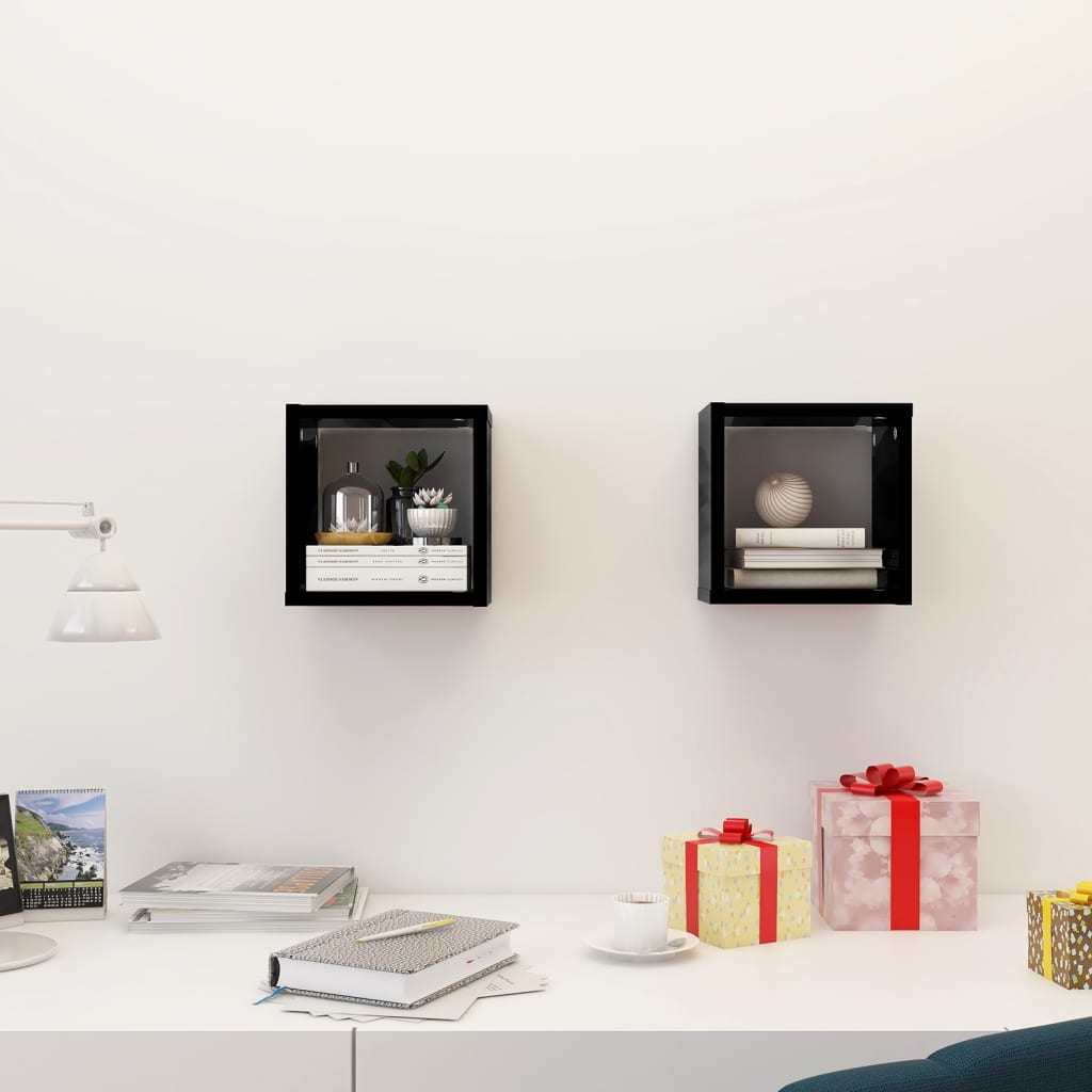 Étagères cube murales 2 pcs Noir brillant 22x15x22 cm : un design élégant et pratique
