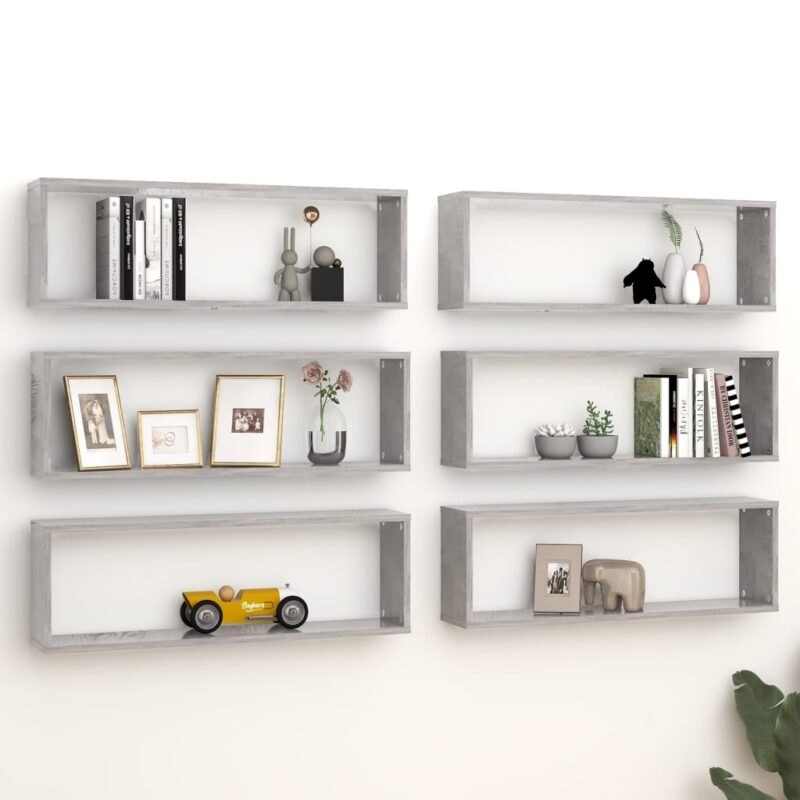 Modernisez instantanément votre intérieur avec notre lot de 6 étagères cube murales au fini gris béton. Ces étagères agglomérées, aux lignes pures et minimalistes, transforment un mur ordinaire en une exposition captivante et pratique. Elles offrent des solutions de rangement esthétiques pour une variété d’objets, des livres aux souvenirs, grâce à leur solidité et leur conception bien pensée.