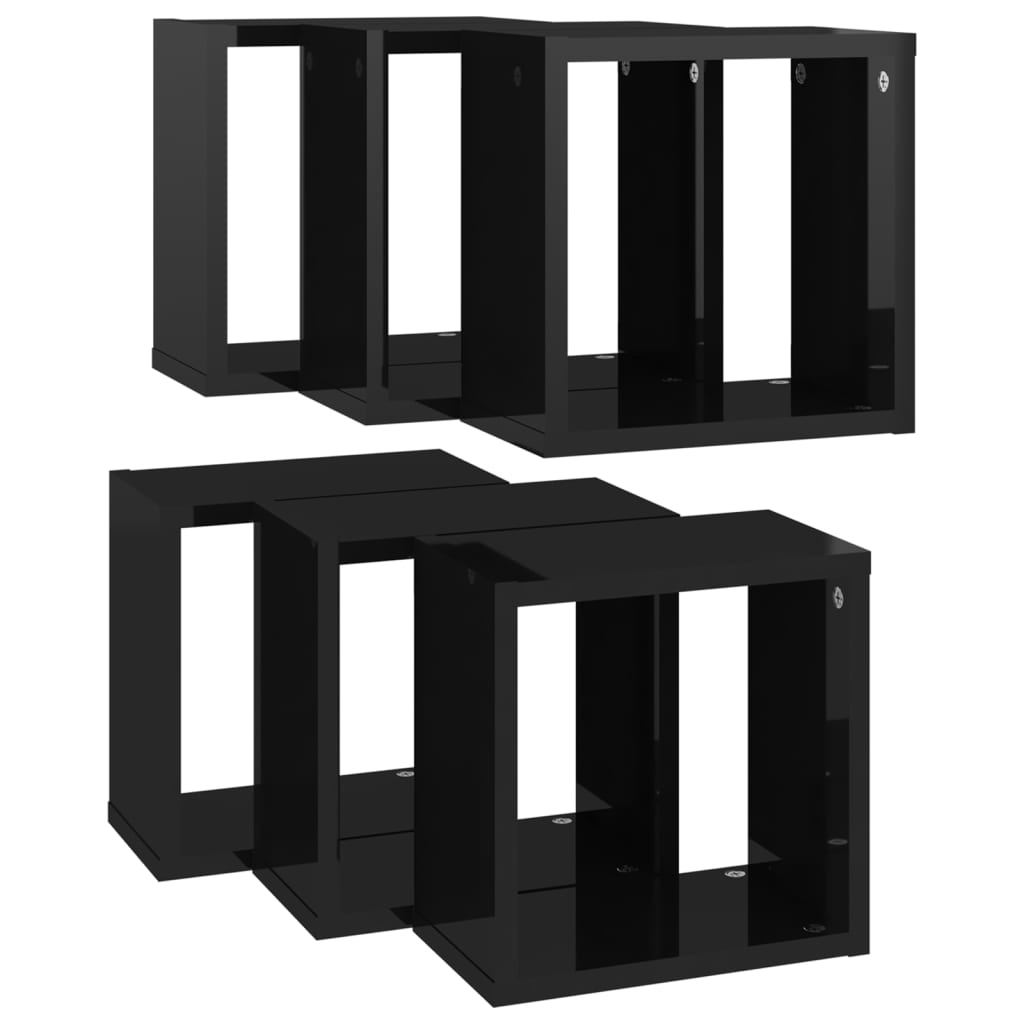 Détails fascinants des étagères cube murales 6 pcs noir brillant
