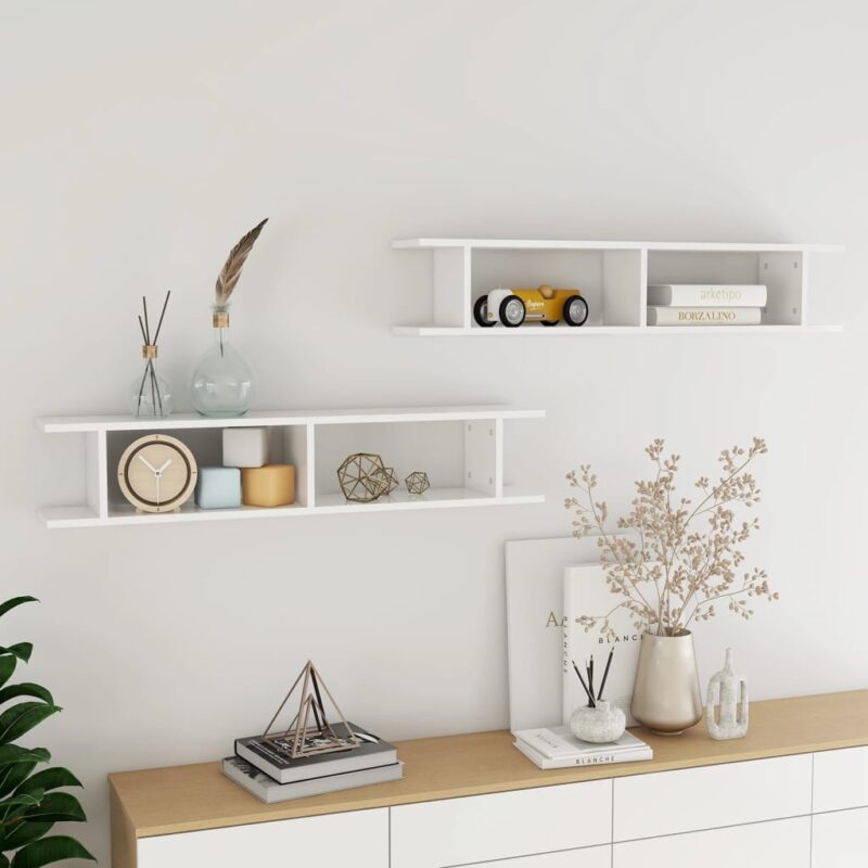 Étagères murales 2 pcs Blanc brillant 105x18x20 cm Aggloméré 45.99