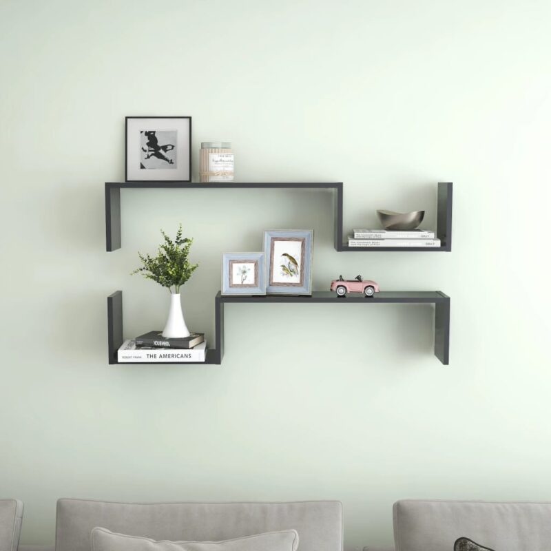 Valorisez votre espace de vie avec ce duo raffiné d’étagères murales grises en aggloméré. Conçues pour captiver le regard, ces étagères robustes et durables embelliront votre intérieur avec élégance. Grâce à leur système de fixation caché, elles donnent l’impression de flotter et apportent une touche de modernité à tout environnement domestique. Montez-les aisément pour y exposer vos trophées, sélection de lectures, bibelots et plus encore, tout cela en sublimant un pan de mur vide. De plus, leur entretien est un jeu d’enfant : un simple coup de chiffon humide suffit pour les maintenir impeccables.