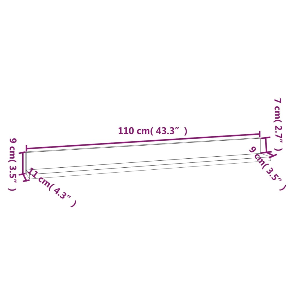 Étagères murales 2 pcs Gris 110x11x9 cm Bois de pin massif