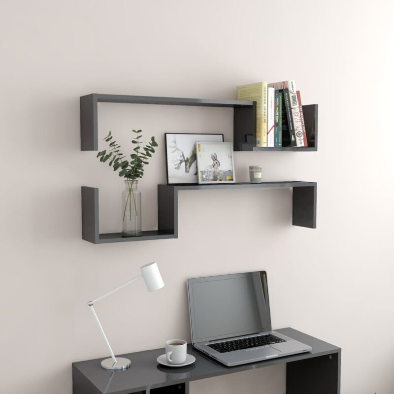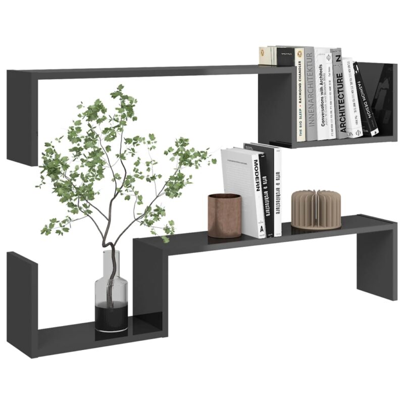 Étagères murales 2 pcs Gris brillant 100x15x20 cm Aggloméré