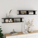 Img alt= »Étagères murales 2 pcs Noir aggloméré sur mur blanc »