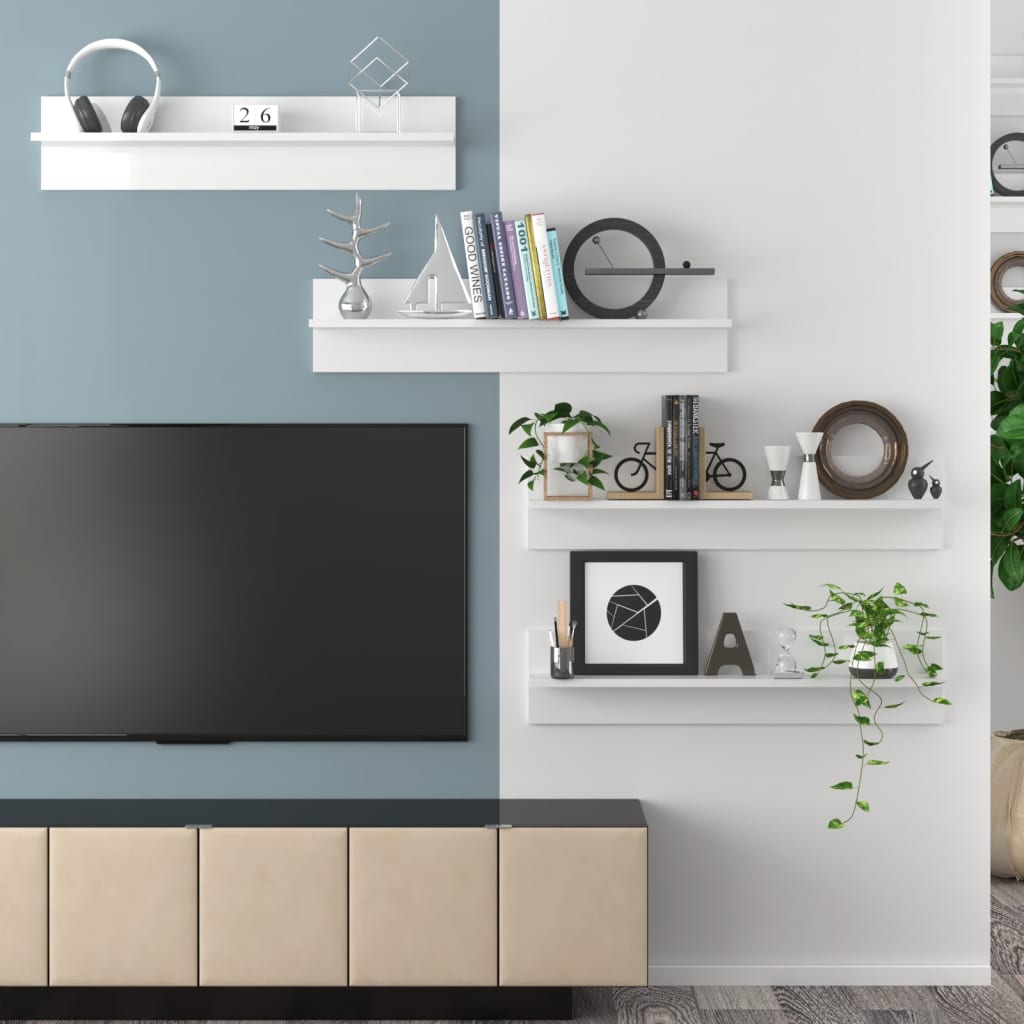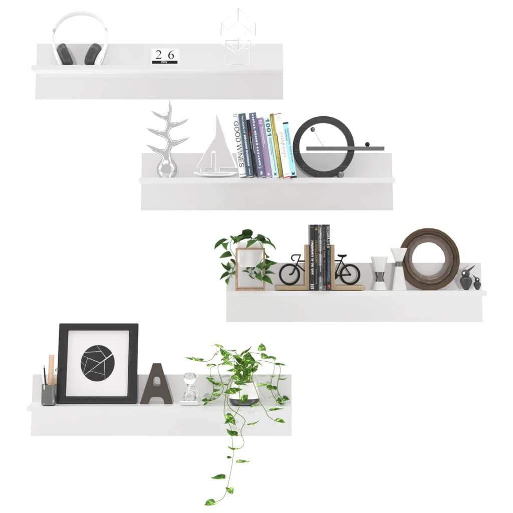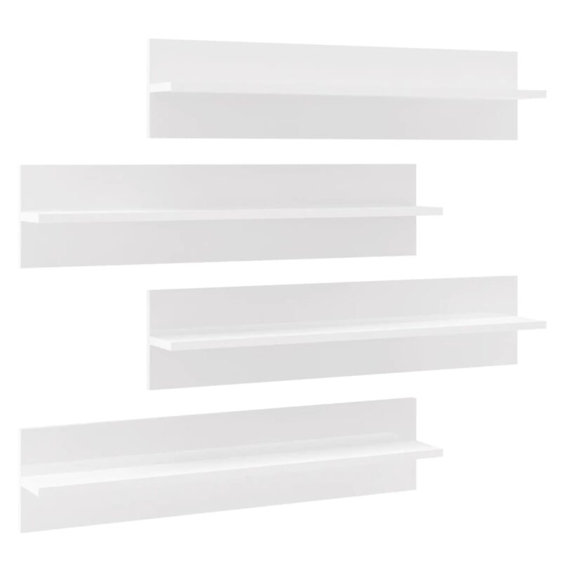 - 4x Étagères murales 4 pcs Blanc brillant 80×11,5×18 cm Aggloméré, prêtes à être installées et à sublimer votre espace.