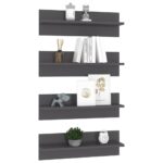 Étagères murales 4 pcs Gris brillant 60×11,5×18 cm Aggloméré – Style et fonctionnalité