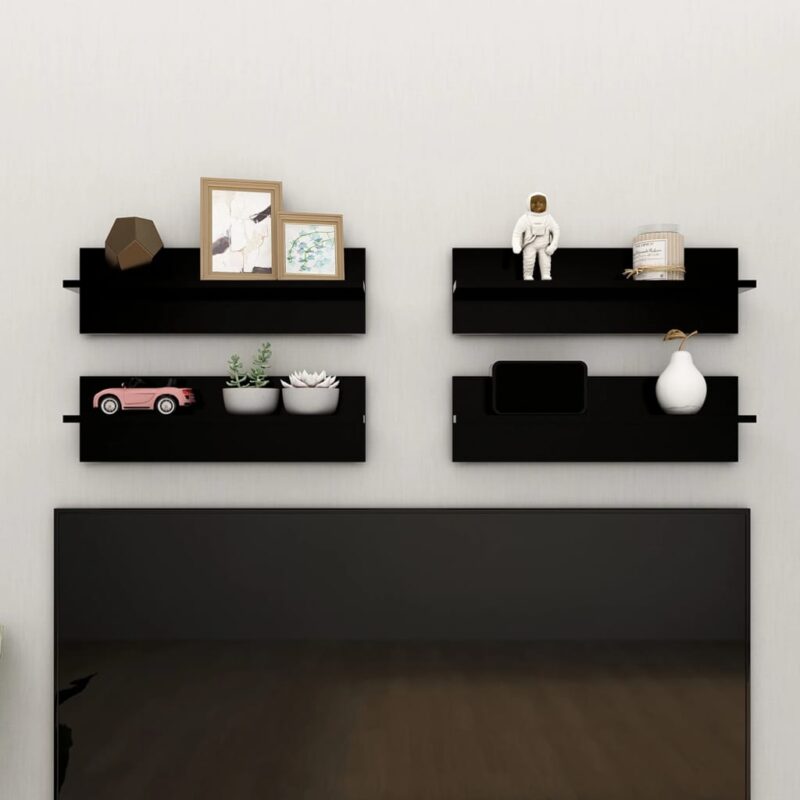 Étagères murales 4 pcs Noir 60×11,5×18 cm Aggloméré pour votre intérieur