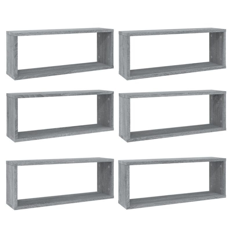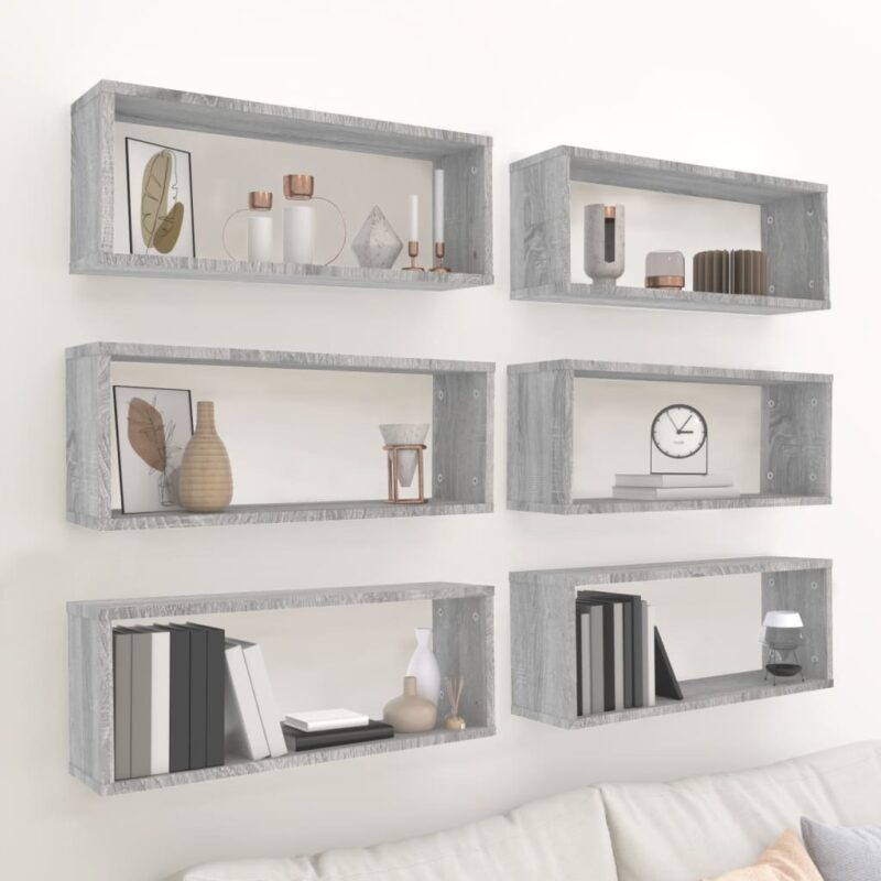 Apportez une touche de sophistication à votre déco avec ces étagères murales cube 6 pcs Sonoma gris 60x15x23 cm Bois. Chaque étagère, confectionnée en bois d’ingénierie, promet non seulement un aspect visuel attrayant mais aussi une grande durabilité et une excellente résistance aux variations d’humidité. Parfaitement lisses, ces cubes s’intégreront avec élégance dans divers environnements, que ce soit votre séjour ou votre chambre.