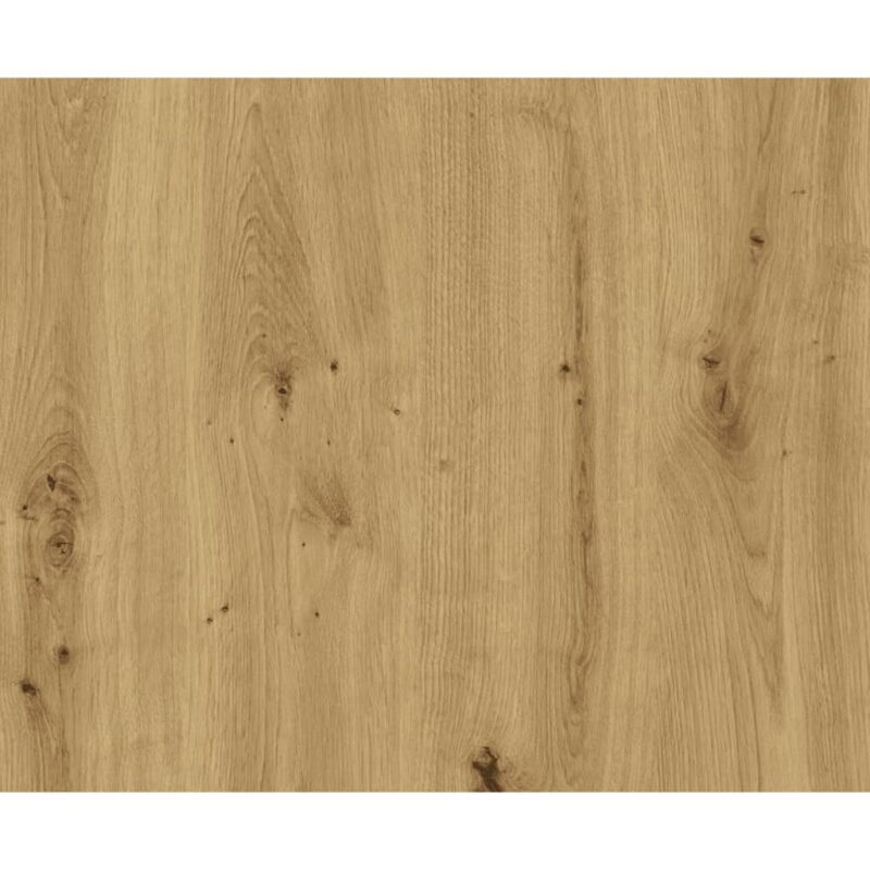 L’aggloméré de haute qualité revêtu de mélamine confère à l’armoire une résistance remarquable ainsi qu’une finition attrayante qui imite subtilement le bois de chêne artisanal. Les nuances de chêne complétées par des éléments noirs confèrent à ce meuble une polyvalence esthétique, lui permettant de s’harmoniser avec une multitude de décors intérieurs. Le revêtement en mélamine assure une longévité accrue à cette pièce.