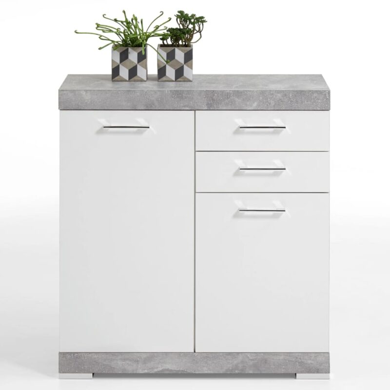 Cette armoire, conçue par FMD, combine des panneaux de particules robustes et une finition mélaminée avec une allure béton et une nuance blanche éclatante qui se marie avec une variété de décors intérieurs. Que votre déco soit traditionnelle ou qu’elle penche vers un style plus avant-gardiste, cette armoire s’incorpore sans effort.