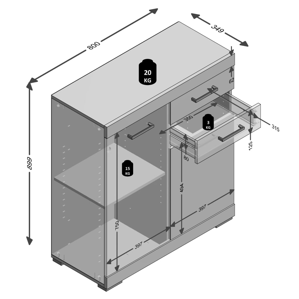 - Dimensions exactes : L’armoire mesure 80 x 34,9 x 89,9 cm, parfaitement proportionnée pour des usages variés.