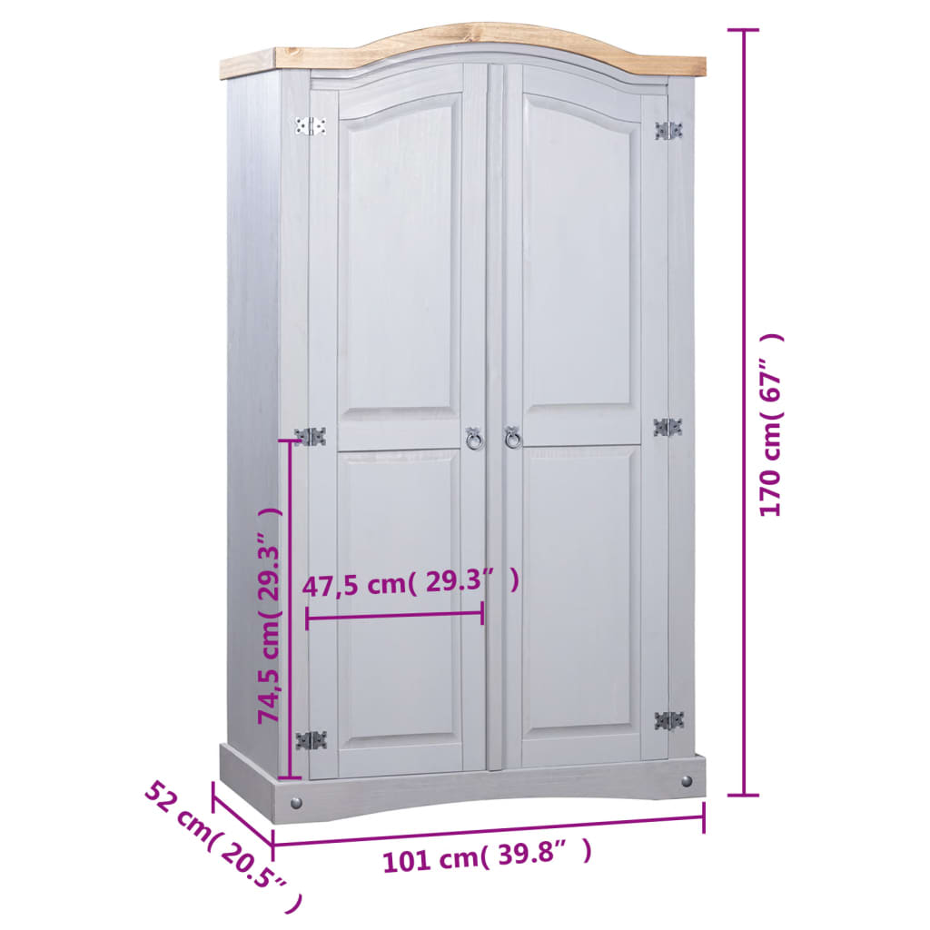 Garde-robe avec 2 portes Gamme Corona pin mexicain Gris