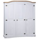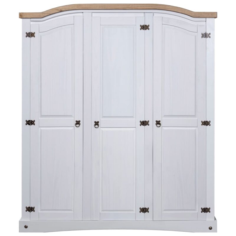 Découvrez le charme rustique du Mexique avec la Garde-robe avec 3 portes Gamme Corona en pin mexicain Blanc, un ajout parfait pour ranger élégamment vos vêtements. Fabriquée à partir de pin massif dur et ciré, cette armoire trois portes est ornée de détails métalliques qui captent l’essence du design mexicain traditionnel. Le toit arrondi embellit son allure générale, faisant de cette garde-robe l’élément central de votre chambre.