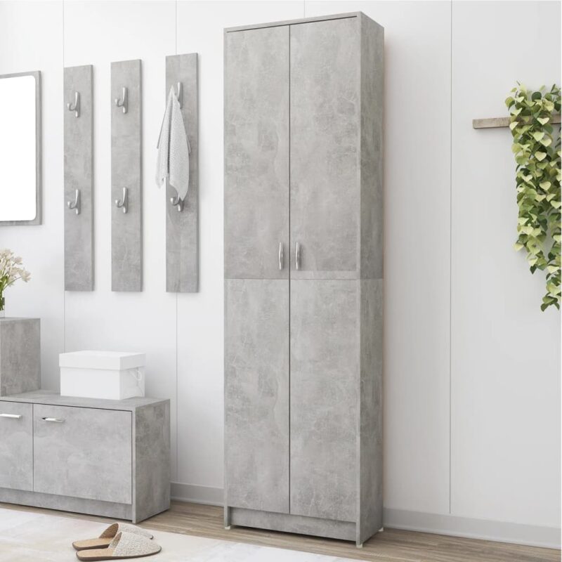 Optez pour le ton industriel moderne avec ce meuble en Gris béton – une nuance qui apportera une touche de sophistication minimaliste à votre espace. Cette garde-robe de couloir en aggloméré est la définition même de la robustesse, sa durabilité vous accompagnera au quotidien. Les dimensions de 55x25x189 cm en font un ajout parfait pour n’importe quel espace réduit nécessitant une organisation exemplaire.