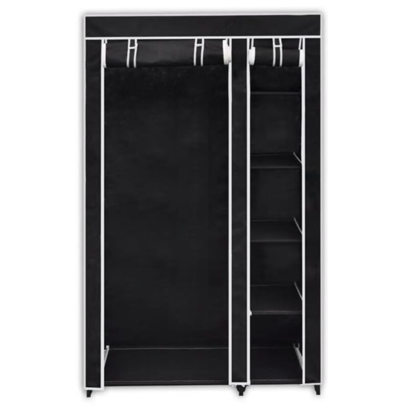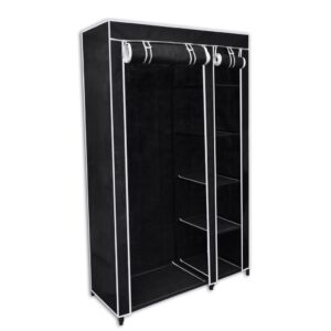 Construite à partir de tissu polaire robuste et soutenue par une structure en tubes d’acier, cette garde-robe en tissu noir promet durabilité et longévité. Son montage est simple, vous permettant de l’utiliser rapidement après son arrivée. Cette offre comprend deux armoires pliantes pour encore plus d’options de rangement.