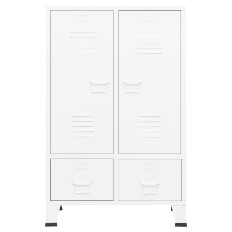 Optez pour cette garde-robe industrielle Blanc 67x35x107 cm Acier et ajoutez une touche d’élégance fonctionnelle à votre intérieur. Conçue pour durer, cette garde-robe en acier blanc se distingue par sa facilité d’entretien et sa robustesse. Idéale pour apporter une ambiance industrielle branchée, elle est équipée de deux étagères ajustables pour classer vos habits et de deux tiroirs pratiques, parfaits pour organiser des petits vêtements comme vos chaussettes et sous-vêtements.