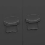 Outre ses solutions de rangement étendues, cette armoire possède des porte-étiquettes et des aérations, démontrant une attention particulière aux détails qui souligne son esthétique industrielle.