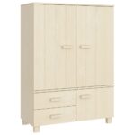 Développez vos options de rangement avec cet ajout stylé et fonctionnel à votre espace personnel. La résilience de cette garde-robe est assurée par sa construction solide en pin massif, qui garantit durabilité et stabilité. Avec plusieurs portes et espaces de rangement, vous pouvez organiser facilement vos vêtements et accessoires tout en maintenant un environnement ordonné et accueillant. Les tiroirs glissants vous fournissent de l’espace additionnel pour ranger en toute discrétion vos petits articles tels que sous-vêtements et chaussettes.
