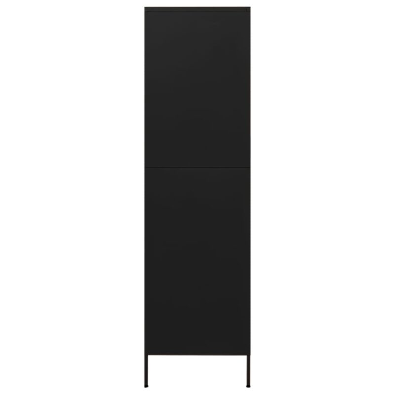 Améliorez l’agencement de votre espace de vie grâce à cette élégante garde-robe noir 90x50x180 cm acier. Outre son design épuré apportant une note moderne à votre déco, la robustesse de sa fabrication en acier en fait un choix judicieux pour une utilisation durable. Son entretien est en plus un jeu d’enfant. L’intérieur de la garde-robe est pensé pour votre commodité, avec 4 étagères réglables et un compartiment spacieux équipé d’une tringle, parfait pour accueillir aussi bien vos longs manteaux que vos vêtements pliés ou différents accessoires.