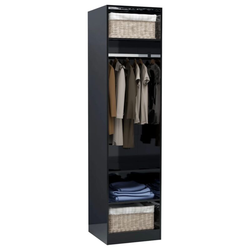 Optez pour l’élégance et la fonctionnalité avec notre Garde-robe Noir brillant 50 x 50 x 200 cm Aggloméré. Ce meuble chic et compact deviendra l’allié quotidien pour organiser vos effets personnels, tout en apportant une touche d’éclat et de modernité à votre intérieur. Conçu pour résister à l’usure du temps, cette garde-robe robuste et durable est réalisée en aggloméré de première qualité.