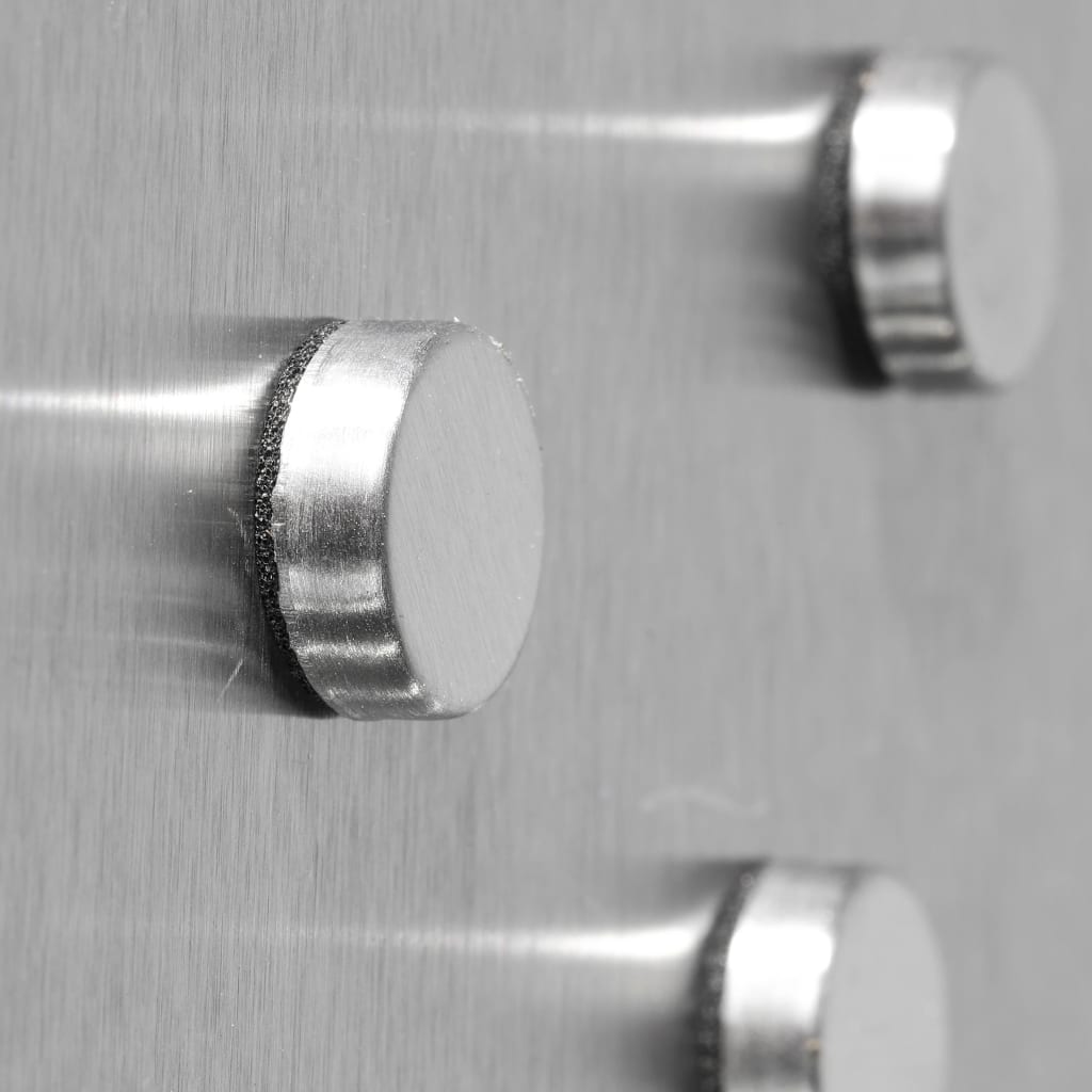 Vous bénéficiez de six crochets polyvalents pour vos clés, quatre aimants pour fixer vos papiers et tout le nécessaire pour installer facilement votre nouveau porte-clé argenté.