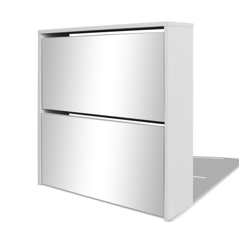 Optimisez votre espace avec élégance : Meuble à chaussures 2 étages avec miroir 63 x 17 x 67 cm Blanc