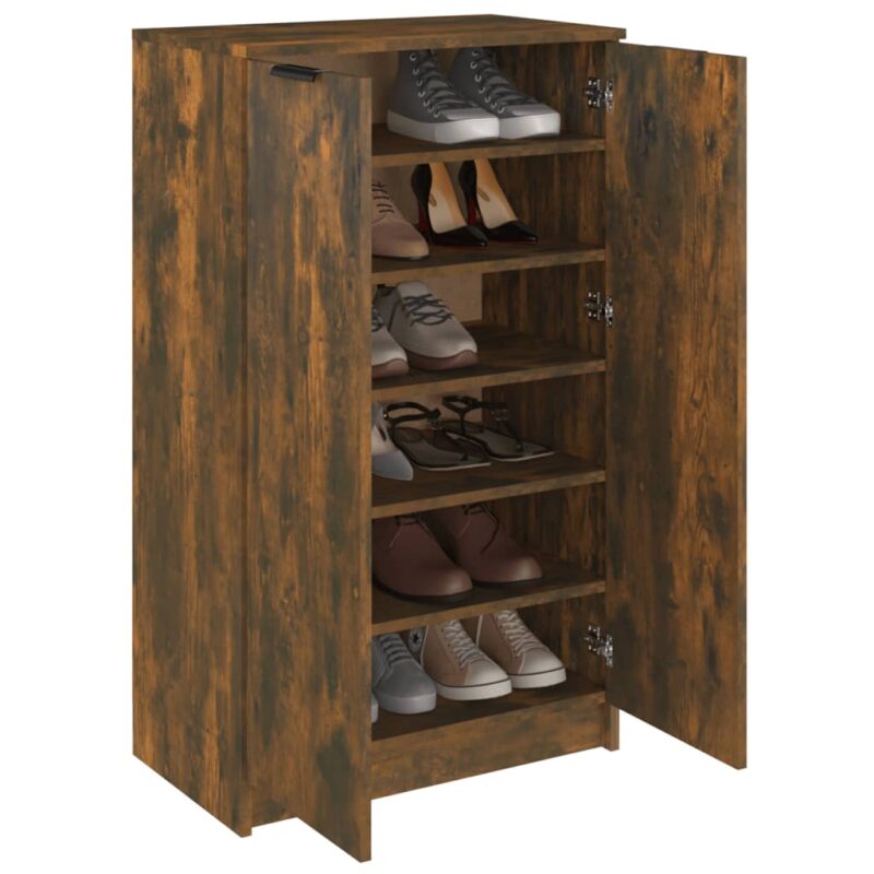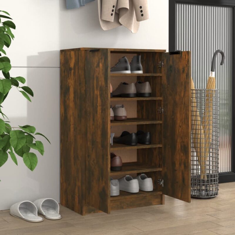 Découvrez l’élégance et la fonctionnalité du Meuble à chaussures Chêne fumé 59x35x100 cm Bois d’ingénierie qui révolutionnera la gestion de l’espace dans votre intérieur. Ce meuble, d’une qualité hors pair grâce à sa fabrication en bois d’ingénierie haut de gamme, arbore une résistance optimale et une finition lisse. Il est également conçu pour résister contre l’humidité, assurant ainsi une longévité remarquable.