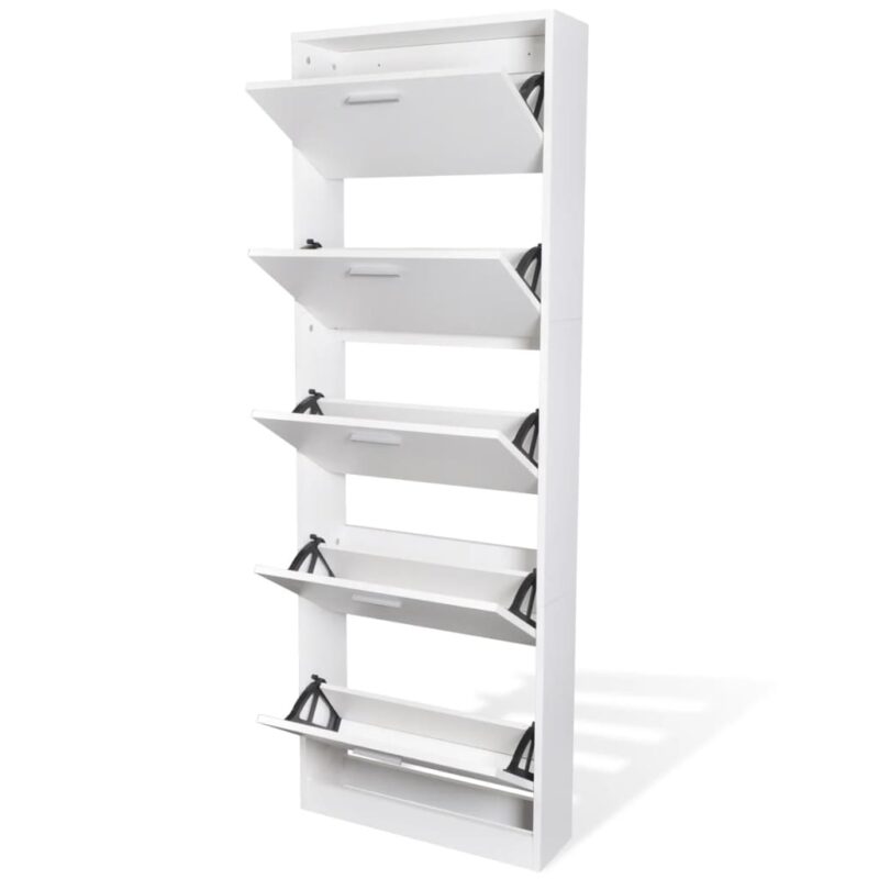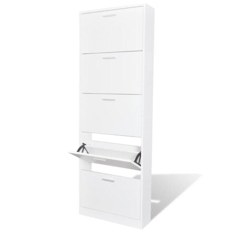 Laissez ce meuble à chaussures en bois avec 5 compartiments blanc devenir l’allié de votre routine quotidienne, en gardant vos chaussures organisées et facilement accessibles.