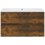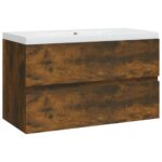 Offrez à votre salle de bain une touche d’élégance grâce à ce remarquable meuble lavabo avec bassin intégré Chêne fumé Bois d’ingénierie. Avec son espace de rangement généreux, il représente bien plus qu’un simple élément fonctionnel. De plus, sa conception en bois d’ingénierie de haute qualité assure une surface régulière, la solidité du meuble, ainsi qu’une excellente tenue face à l’humidité. Le lavabo en céramique intégré prône la simplicité de nettoyage et ajoute une touche de finesse à l’ensemble.