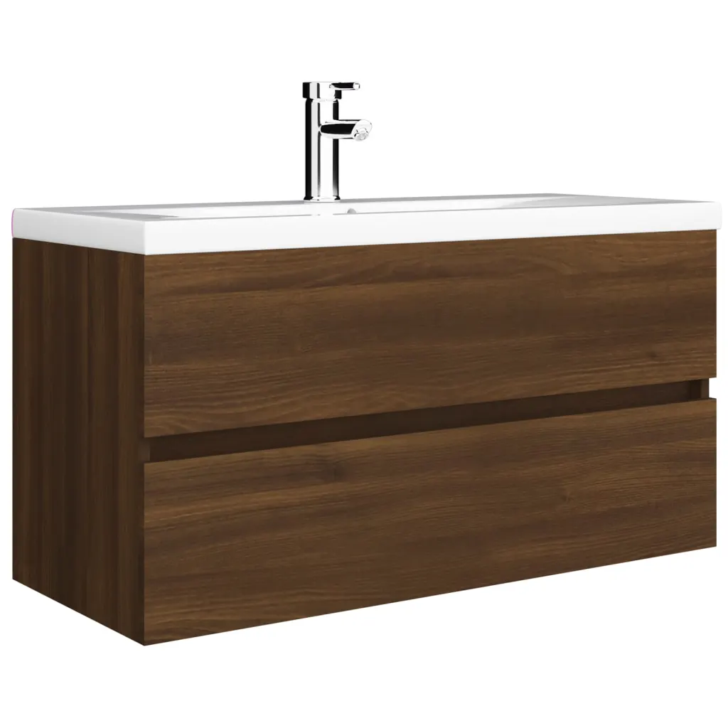 Meuble sous-lavabo suspendu salle de bain chêne marron: élégance et fonctionnalité