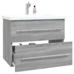 Le Meuble sous-lavabo suspendu salle de bain sonoma gris 2 tiroirs avec poignées est une solution idéale pour ceux qui recherchent style et efficacité dans l’aménagement de leur salle de bain.