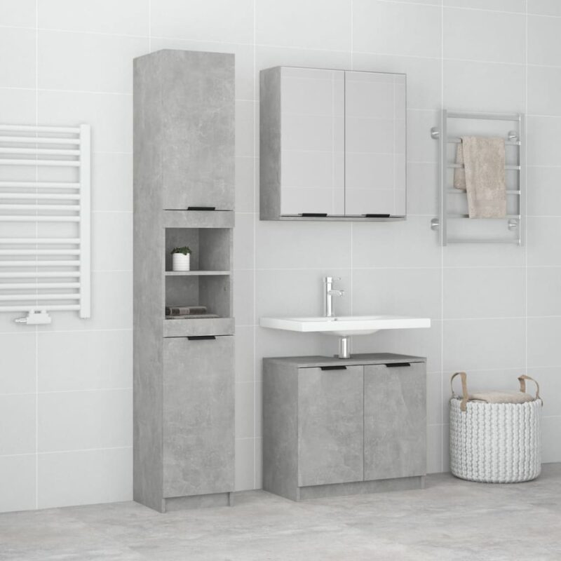 Optimisez votre espace avec le meuble de salle de bain 3 pcs gris béton et bois d’ingénierie