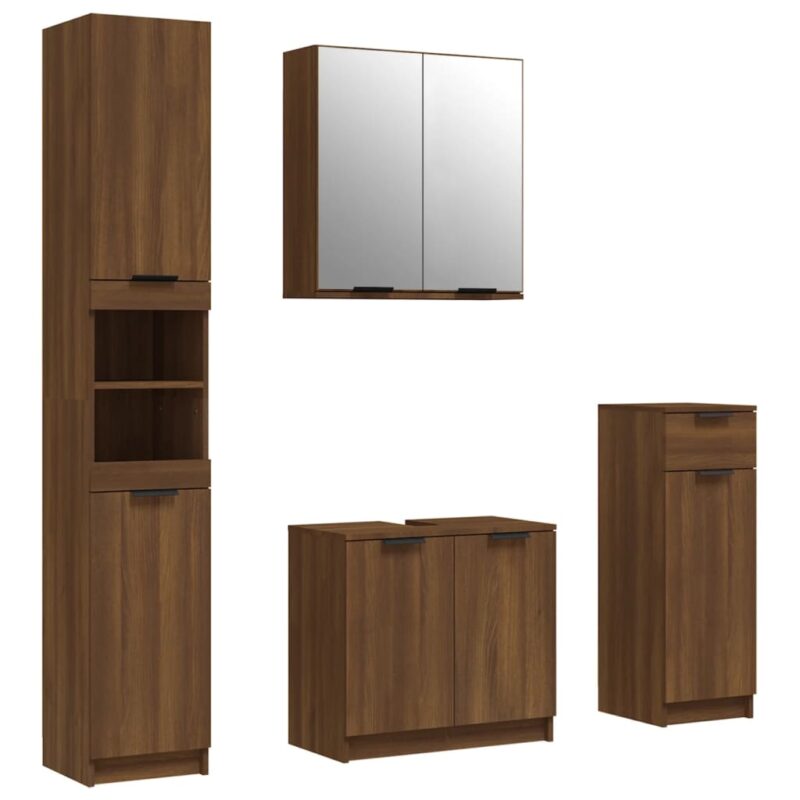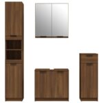 Élégance et fonctionnalité avec le set de Meubles de salle de bain 4 pcs Marron Bois d’ingénierie