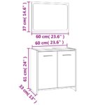 - Dimensions de l’armoire : 60 cm de longueur x 33 cm de profondeur x 61 cm de hauteur