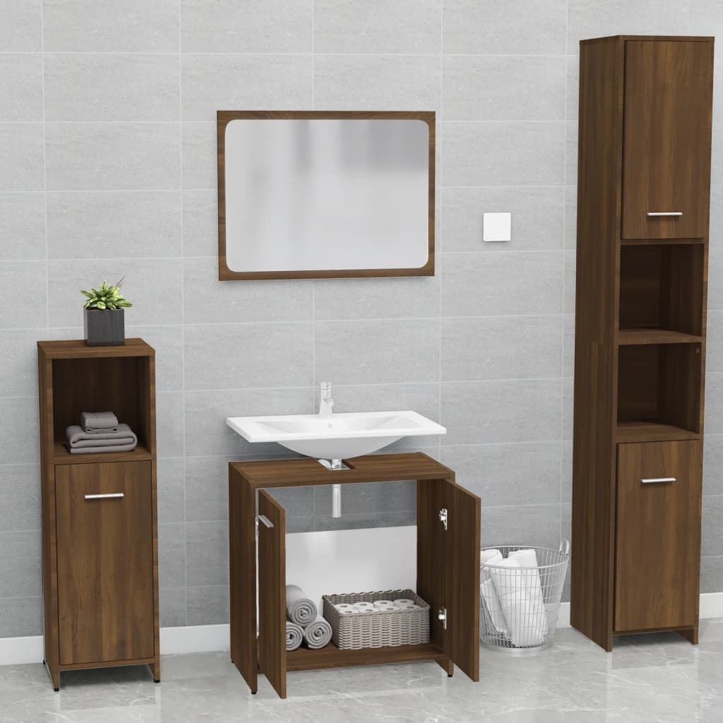 Offrez à votre salle d’eau un cachet exceptionnel avec notre ensemble de Meubles de salle de bain Chêne marron Bois d’ingénierie. Ce mobilier se distingue par son esthétique raffinée et ses fonctionnalités pratiques, transformant l’espace en un lieu aussi agréable que fonctionnel. Profitez d’une construction en bois d’ingénierie de haute qualité, qui promet une surface satinée tout en vous garantissant durabilité et résistance contre l’humidité, des atouts incontestables pour l’environnement spécifique d’une salle de bain.