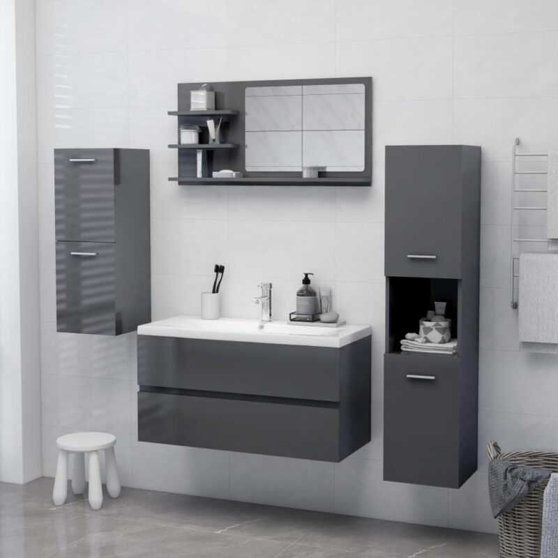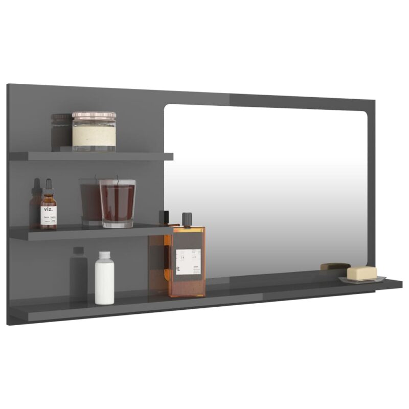 Miroir de salle de bain Gris brillant 90x10,5x45 cm Aggloméré 49.99