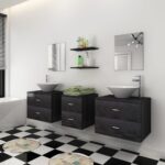 Mobilier de salle de bain avec lavabo 7 pièces en noir
