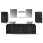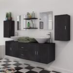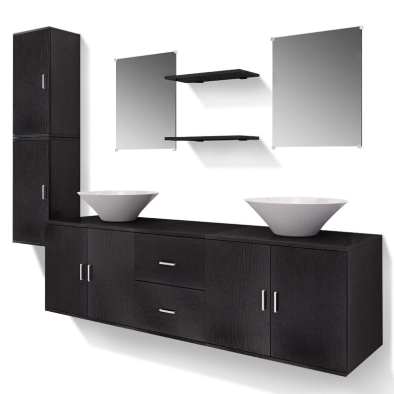 Cette parure complètera votre salle de bain avec élégance et praticité. Facile à assembler, vous serez rapidement prêt à jouir de votre nouvel espace, agrémenté de ce Mobilier de salle de bain avec lavabo 9 pcs Noir. Précisons que les robinets ne sont pas fournis et que les lavabos sont prêts à être équipés selon vos choix de robinetterie.